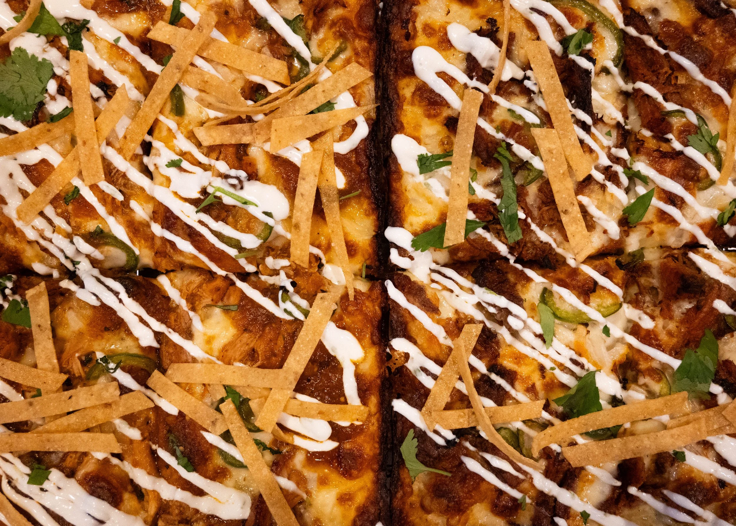 Chicken Tinga - Shredded chicken, with jalapeños, onions, cilantro, tortilla strips and drizzled with a crema sauce.
